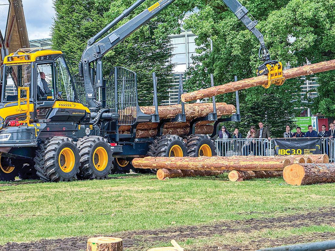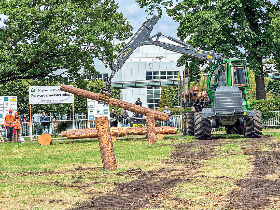 The 15th Lower Saxony (State) Forwarder Championship was held on May 29 during the LIGNA show at the Exposition Grounds in Hannover, Germany. Ponsse and John Deere forwarders took center stage. The first round, “Tower Building,” was all about skill and speed. Forwarder operators stacked wooden blocks as quickly and precisely as possible. The top 16 finishers advanced to the Cup Competition, where two drivers went head-to-head, navigating a challenging course and loading the machines with wood at different stations, again scoring on speed and precision, with the winners proceeding to the same head-to-head competition in the quarterfinals, semifinals and finals. First place champion was Leon Schäfer (Lower Saxony, Germany), second place was Christian Maier (Baden-Wuerttemberg, Germany), and third place went to Günther Weismann (Bavaria, Germany).