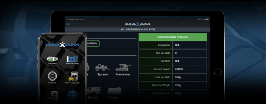 Available for both iOS and Android, the newly updated and optimized Maxam app features more tools than ever, along with an easy to navigate menu. Users now have access to both the TKPH/TMPH calculator for off-the-road applications and the all-new agricultural air pressure calculator along with additional features like a direct contact form for the Maxam team; direct access to all product data sheets; the ability to zoom in on all images and data tables, and so much more.