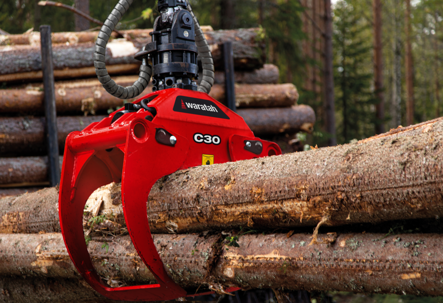 The Waratah forestry grapple line includes three model categories: C models (traditional forestry); large C models (heavy-duty tasks), and E models (maximum material handling).