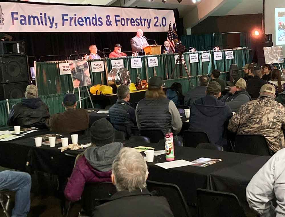 2022 Oregon Logging Conference President Scott Melcher addresses the opening session at this year’s event in Eugene, Ore. Critical labor issues and finding ways to develop younger employees for the logging industry are big topics at the 2022 OLC, which is live and in person this year after a virtual show in 2021.