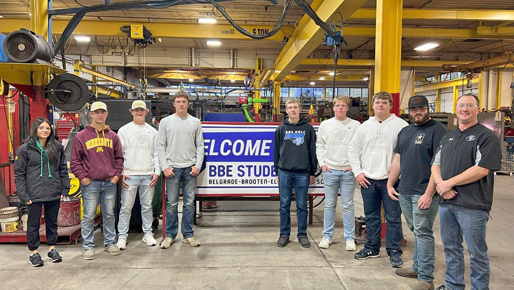 Several area student groups took the time to tour Rotochopper’s manufacturing facility and see firsthand the opportunities available in the manufacturing industry. This included the West Stearns Creating Entrepreneurial Opportunities (WSCEO) group, the Belgrade-Brooten-Elrosa (BBE) high school welding class, as well as the Kimball high school small engines class.