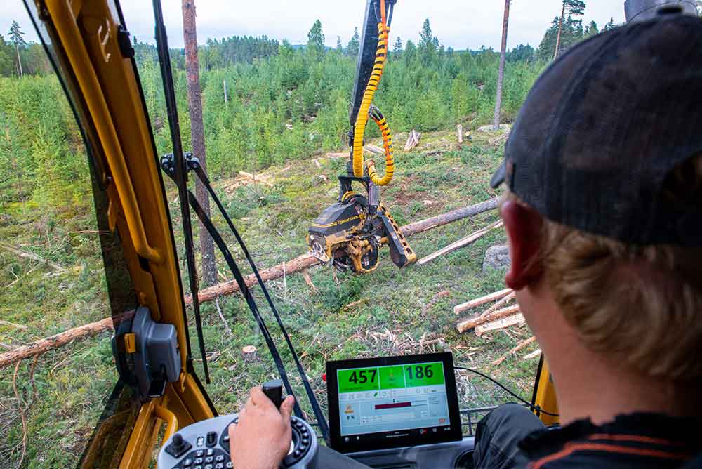There are two types of bucking control available for D7. Priority-based bucking logic utilizes a list of operator-entered log specifications sizes to determine how best to process the tree. The D7 Optimization level uses a value-based logic. Using multiple layers of matrices correlating price, demand, and production limits to each log size under each tree species, the control system optimizes each processed tree to achieve the best value. These matrices are usually programmed by the timber buyer.